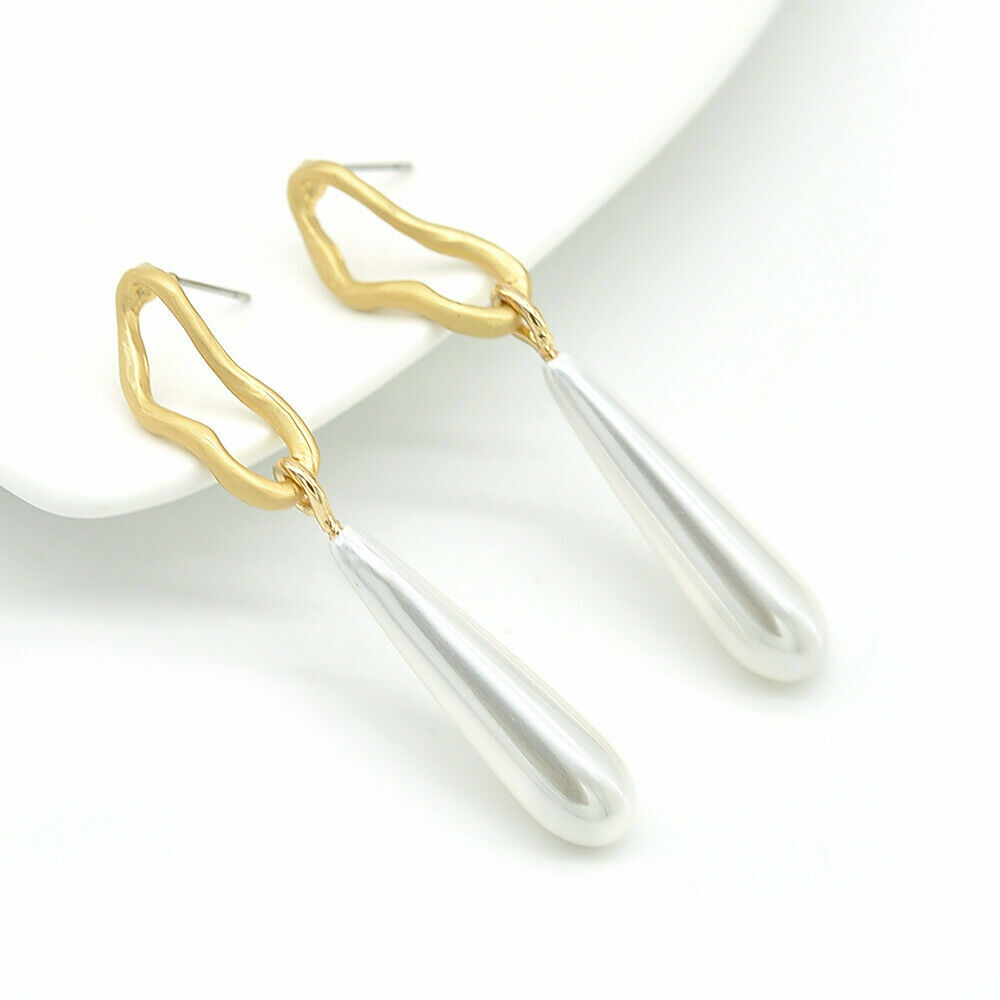 Ιδιαίτερα μοντέρνα σκουλαρίκια διακοσμημένα με λευκές πέρλες σε σχήμα σταγόνας. Άκρως καλοκαιρινά και θηλυκά με επιμετάλλωση χρυσού 14Κ!!