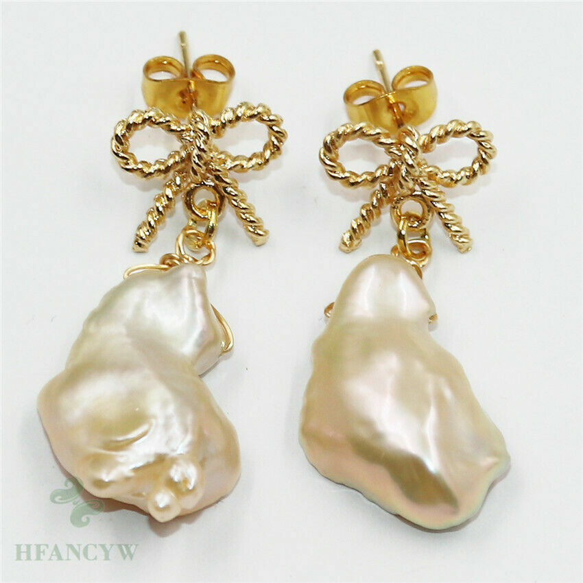 Σκουλαρίκια με επιμετάλλωση από χρυσό 18k διακοσμημένα με Baroque Freshwater ροζ φυσικές πέρλες ΑΑΑ 14-16 mm.