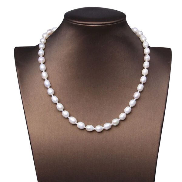 Ένα μοναδικό κολιέ με εντυπωσιακά λευκά μαργαριτάρια Akoya Pearl διαμέτρου 8,0 έως 9,0 χιλιοστά. Άριστης ποιότητας ΑΑΑ εξαιρετικού γυαλίσματος σε σχήμα baroque. Διαθέτει silver κούμπωμα ασφαλείας.