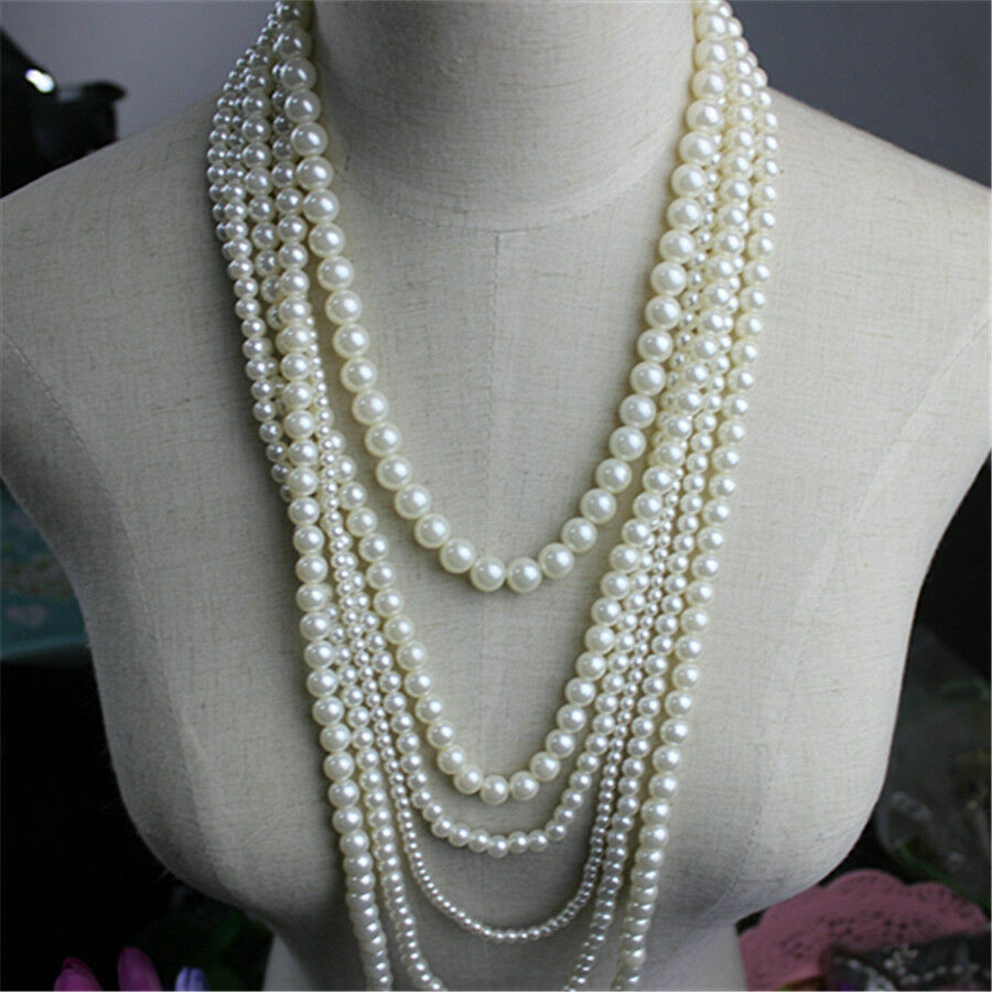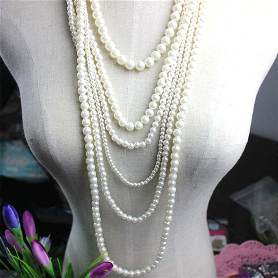 πάρτυ, διακοσμημένο με 5 σειρές λευκές feau round πέρλες 8-12mm υψηλής