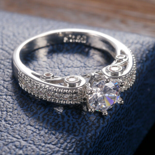 Μονόπετρο γυναικείο δαχτυλίδι, ένα μικρό αριστούργημα! Επάργυρο 925, διακοσμημένο με λευκό ζαφείρι (Lab creation) σε κοπή μπριγιάν και μικρότερα λευκά ζαφείρια (Lab creation) περιμετρικά της γάμπας σε κοπή round. Βάρος Πετρών :0.59ct –0,49 ct 5,7grams.