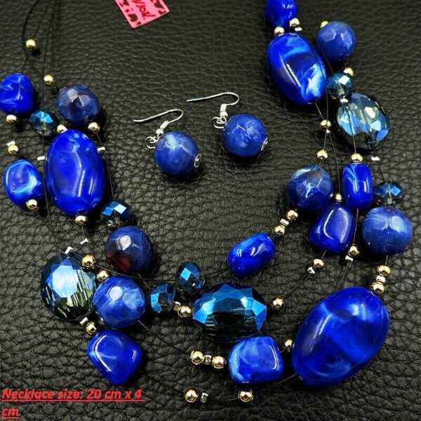 Στο χρώμα της θάλασσας σετ που αποτελείται από 4 σειρές κολιέ και σκουλαρίκια με επιμετάλλωση από ασήμι, φιλοτεχνημένο από τη γνωστή σχεδιάστρια κοσμημάτων Betsey Johnson, μπλε πέτρες με γυαλιστερό φινίρισμα και κρύσταλλα!