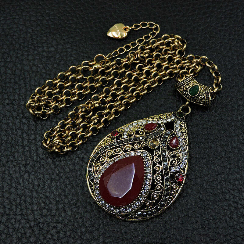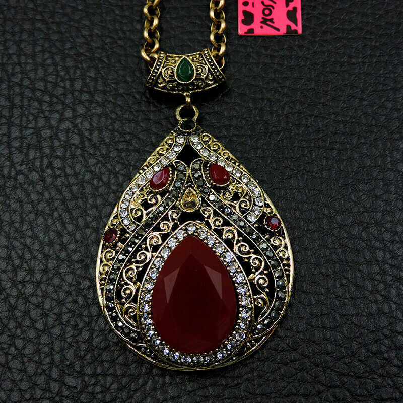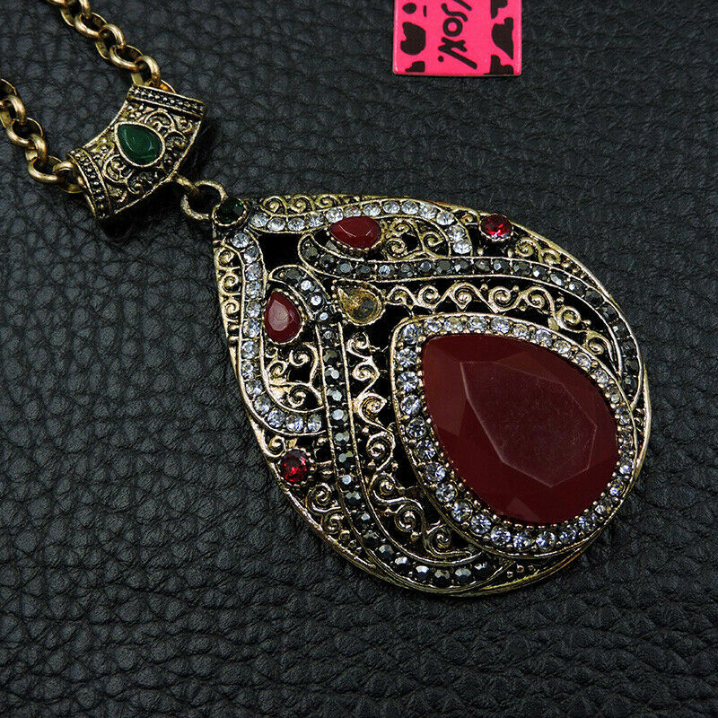 Κόσμημα, κατασκευασμένο από χαλκό και ασήμι, με αντικέ επεξεργασία, μεγάλο μοτίφ 6Χ4 cm, υπέροχο κρύσταλλο σε κόκκινο χρώμα σε κοπή pear. Χαρίστε αέρα κομψότητας στην εμφάνισή σας. Σχεδιασμένο από την Betsey Johnson.