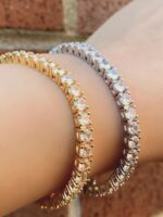 Πλάτος: 4mm Φινίρισμα: 14Κ επιχρυσωμένο Μήκος: 20-22cm Υλικό: Ορειχάλκινος Χρώμα πέτρας: Διαφανές Κοψίματα πέτρας: Στρογγυλή ρύθμιση πέτρας: Micro Pave Τύπος πέτρας: Cz