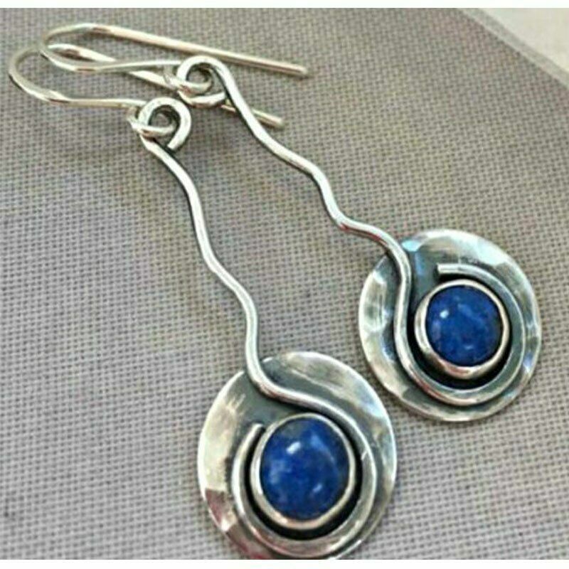 Σκουλαρίκια κατασκευασμένα από Θιβετιανό ασημί και διακοσμημένα με μπλε αχάτη. - Swan Offers