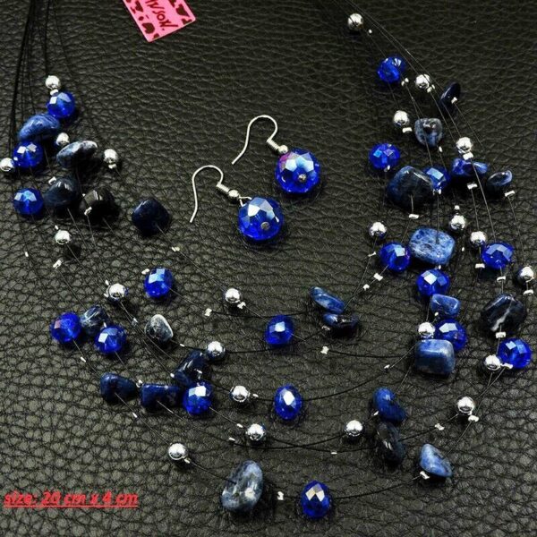 Στο χρώμα της θάλασσας σετ που αποτελείται από 6 σειρές κολιέ και σκουλαρίκια με επιμετάλλωση από ασήμι, φιλοτεχνημένο από τη γνωστή σχεδιάστρια κοσμημάτων Βetsey Johnson, ορυκτές ακατέργαστες πέτρες με γυαλιστερό φινίρισμα και κρύσταλλα!