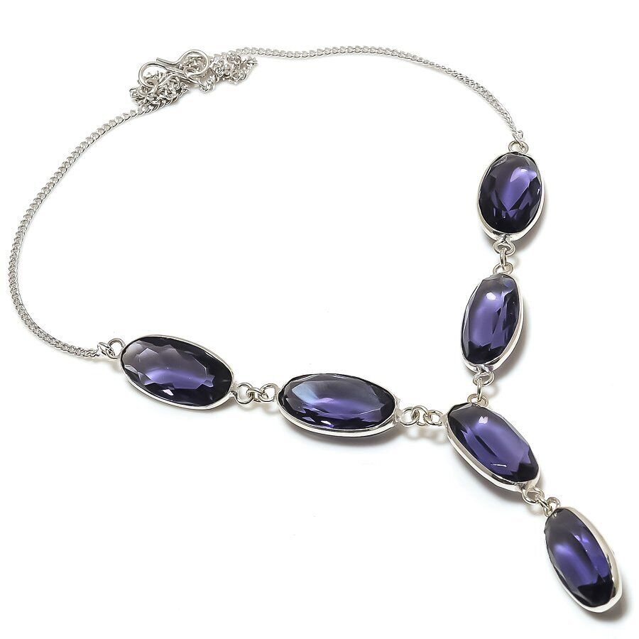 Ινδικό, γυναικείο κολιέ, κατασκευασμένος από ασήμι 925. Διακοσμημένο με υπέροχες, λαμπερές, ορυκτές πέτρες αμέθυστου (Amethyst) (φυσικό ορυκτό) σε κοπή oval. Ένα λαμπερό κόσμημα για τις πιο όμορφες στιγμές της ζωής σας.
