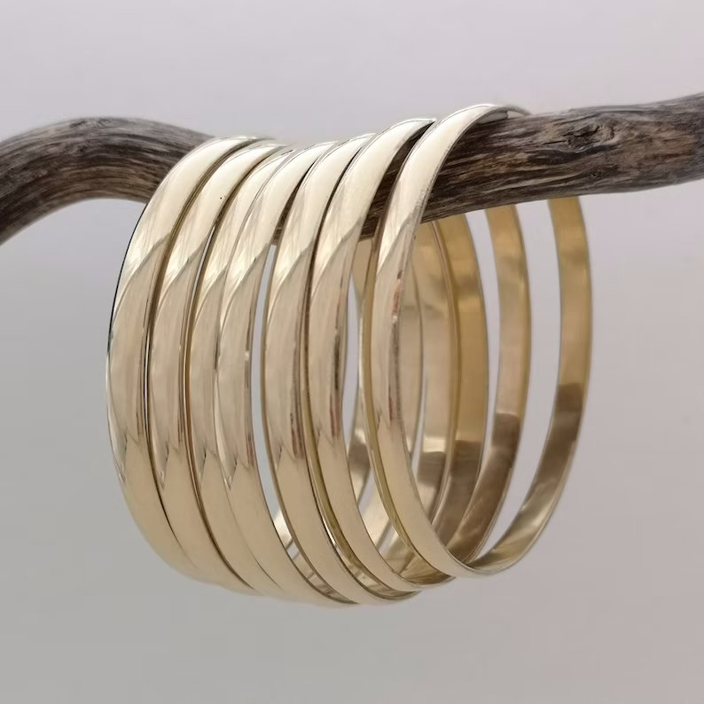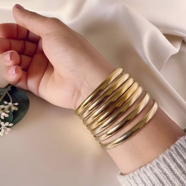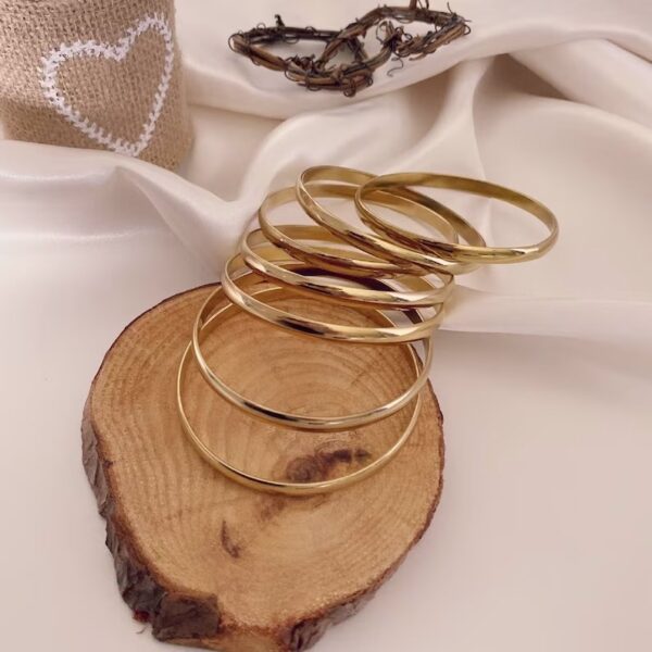 Yπέροχο φαρδύ βραχιόλι (τύπου Βέργα) που μας δίνει το περιθώριο να κάνουμε μοντέρνους συνδυασμούς φορώντας πολλά μαζί, πετυχαίνοντας ένα εντυπωσιακό stylish αποτέλεσμα. Kατασκευασμένο από ανοξείδωτα ατσάλι 18/10 (stainless steel) με επιμετάλλωση κίτρινου χρυσού. Τα βραχιόλια έχουν διάμετρο 6,8 εκατοστά.