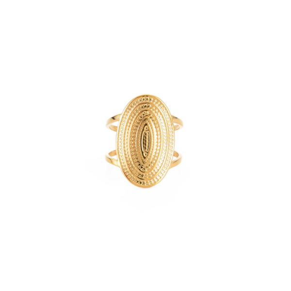 Γυναικείο, χρυσό, σφυρήλατο ατσάλινο δαχτυλίδι απο ανοξείδωτο χρυσό ατσάλι. Φορέστε το μόνο του ή μαζί με άλλα δαχτυλίδια. Η τελευταία τάση της μόδας στα δαχτυλίδια, καθώς φοριέται άνετα κάθε ώρα και για κάθε περίσταση. Το δαχτυλίδι διαθέτει επιμετάλλωση κίτρινου χρυσού.