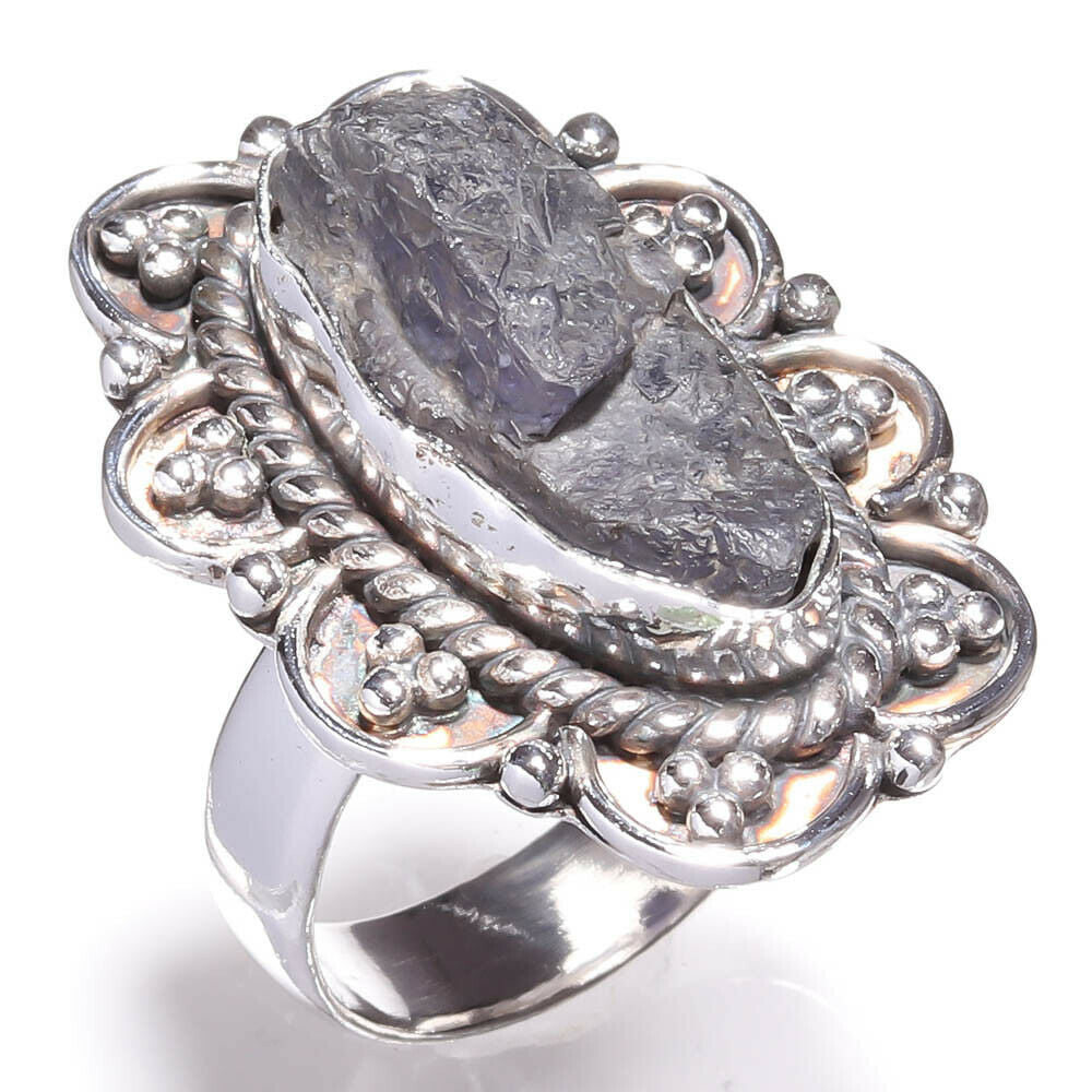 Χειροποίητo ινδικό δαχτυλίδι, κατασκευασμένο από ασήμι 925. Διακοσμημένο με 100% φυσική, ορυκτή, ακατέργαστη πέτρα μαύρης τουρμαλίνης!