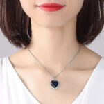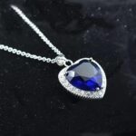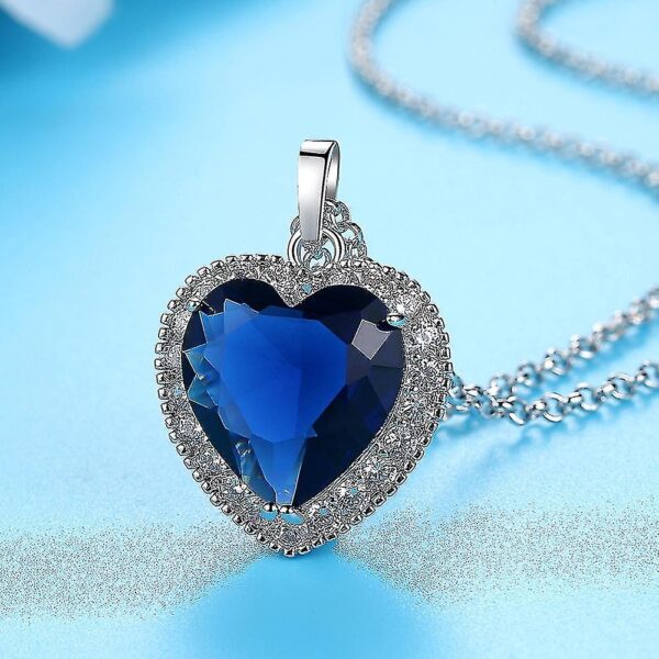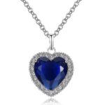 Γυναικείο μενταγιόν Titanic Heart διακοσμημένο με ένα μπλε κρύσταλλο σε κοπή heart και λευκά ζιργκόν σε κοπή round.