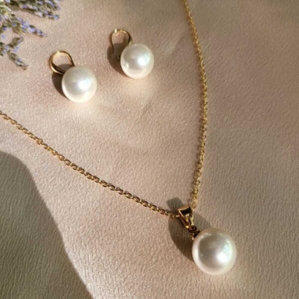 Το ΣΕΤ αποτελείται από: Ένα υπέροχο ζευγάρι σκουλαρίκια με λευκά, μεγάλα μαργαριτάρια QTV Akoya Pearl, άριστης ποιότητας σε σχήμα Round (στρογγυλά), διαμέτρου 14 χιλιοστών. Διαθέτει ασημένια βάση με επιμετάλλωση κίτρινου χρυσού 18 καράτια. Τα μαργαριτάρια διαμέτρου άνω των 10 χιλιοστών είναι το μέγεθος που εντυπωσιάζει, δίνοντας την απόλυτη πολυτέλεια και αίγλη σε κάθε γυναίκα που τα φοράει. Τα μαργαριταρένια σκουλαρίκια είναι τα μοναδικά διαχρονικά κοσμήματα που υπάρχουν από την αρχαιότητα έως και σήμερα.