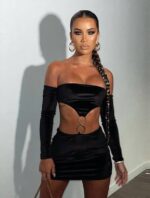 Τα mini φορέματα παραμένουν διαχρονικά και εξίσου απαραίτητα στην chicness ένδυση. Αδιάλλακτη κομψότητα των εμβληματικών mini που έχουν αφήσει ένα ανεξίτηλο στίγμα στα fashion trends, μέσα από μια εναλλακτική πρόταση που επιβάλλει την ισχυρή feminine παρουσία. Εντυπωσιάζει η ακάλυπτη κοιλιά με διακόσμηση διπλό silver κρίκο.