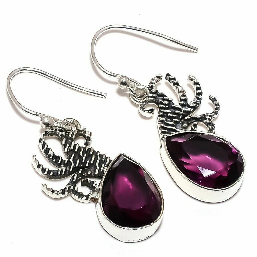 Πανέμορφα, ινδικά, χειροποίητα σκουλαρίκια κατασκευασμένα από ασήμι 925 και διακοσμημένα με υπέροχες ορυκτές πολύτιμες πέτρες Αμέθυστου σε κοπή pearl (φέρνει ομορφιά, μακροζωία και ζωτικότητα). Τα σκουλαρίκια έχουν μήκος 5.8 εκατοστά.