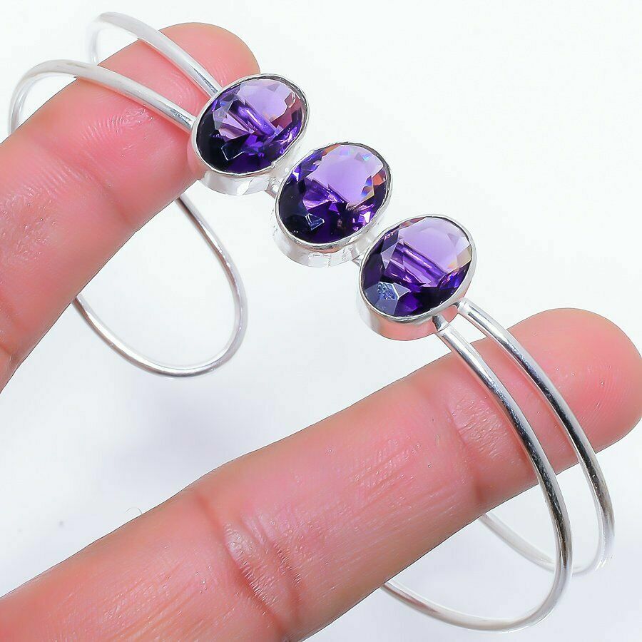 Χειροποίητο βραχιόλι κατασκευασμένο από ασήμι 925, διακοσμημένο με τρεις αμέθυστους σε κοπή οβάλ