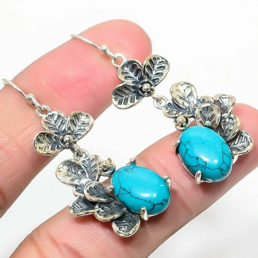 Χειροποίητα, κρεμαστά σκουλαρίκια κατασκευασμένα από μασίφ ασήμι 925 και διακοσμημένα με υπέροχες ορυκτές πέτρες, Turquoise, σε κοπή oval.
