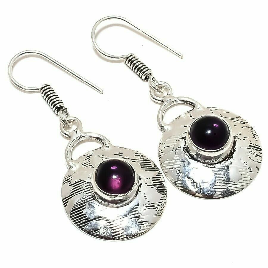 Πανέμορφα, ινδικά, χειροποίητα σκουλαρίκια, κατασκευασμένα από ασήμι 925 και διακοσμημένα με φυσικούς πολύτιμος Αμέθυστος σε κοπή round. Μήκος 4 εκατοστά