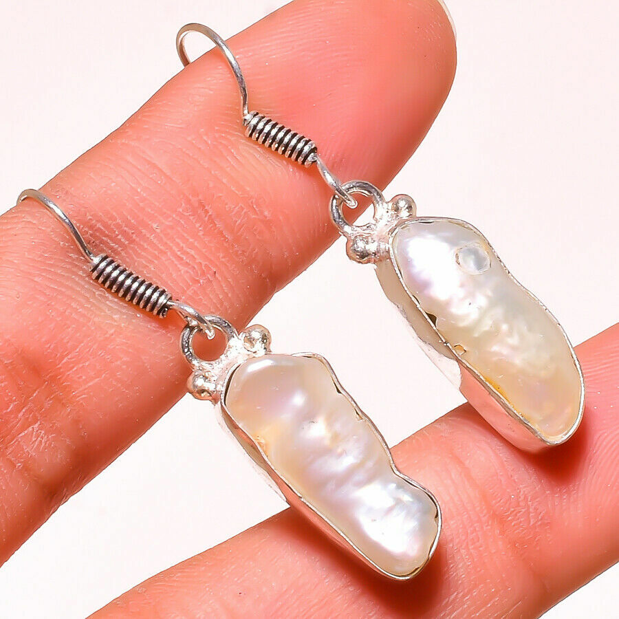 Χειροποίητα κρεμαστά σκουλαρίκια κατασκευασμένα από ασήμι 925 διακοσμημένα με 100% φυσικά Biwa μαργαριτάρια γλυκού νερού. Τα σκουλαρίκια έχουν μήκος 3,8 εκατοστά