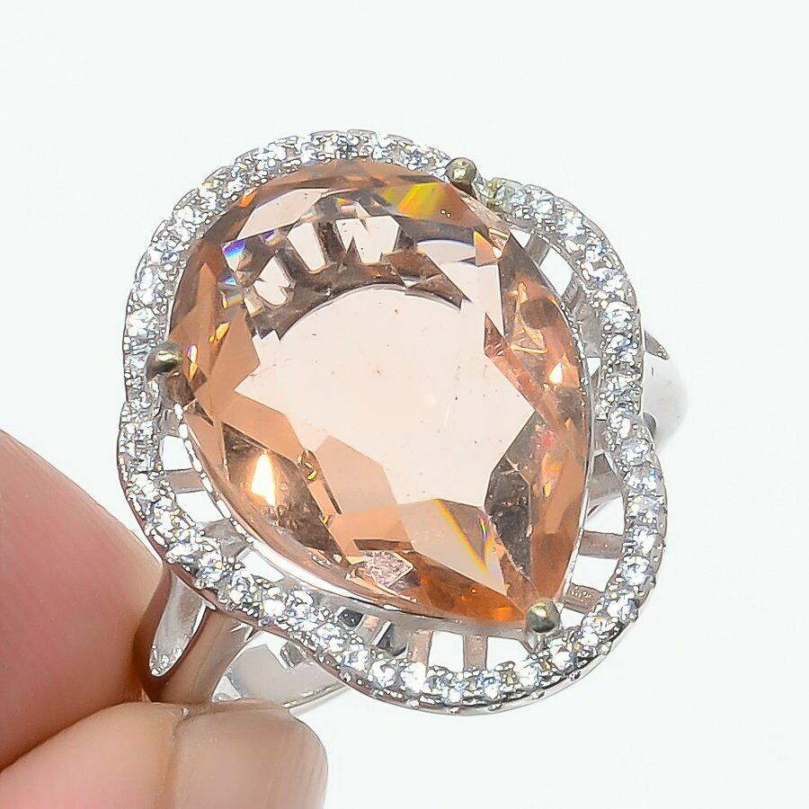 Δαχτυλίδι χειροποίητο κατασκευασμένο από ασήμι 925 διακοσμημένο με έναν ακαταμάχητης ομορφιάς Μοργκανίτη σε κοπή Pear 18x13mm, και λευκά ζιργκόν περιμετρικά από το στεφάνι σε κοπή round!