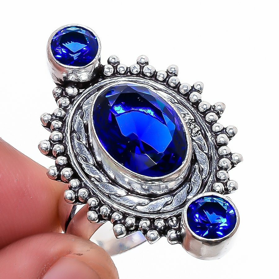 Για τις κυρίες που τους αρέσουν τα μεγάλα δαχτυλίδια με όγκο! Χειροποίητο κατασκευασμένο από ασήμι 925 διακοσμημένο με μπλε ζαφείρια (Lab-Created) σε κοπή oval και round. Περιμετρικά σκαλιστή χειροποίητη δαντέλα. Το δαχτυλίδι είναι διαθέσιμο στο νούμερο 17,5 ή αλλιώς 58.