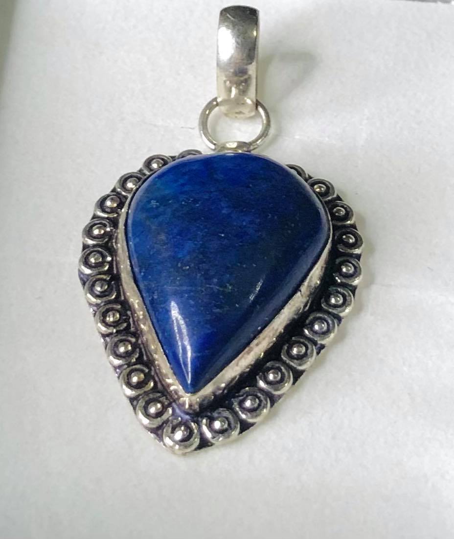 Ινδικό χειροποίητο μενταγιόν, κατασκευασμένο από ασήμι 925 και διακοσμημένο με 100% ορυκτή πολύτιμη πέτρα λαπίς λαζουλί (Lapis lazuli), με βαθύ μπλε χρώμα.