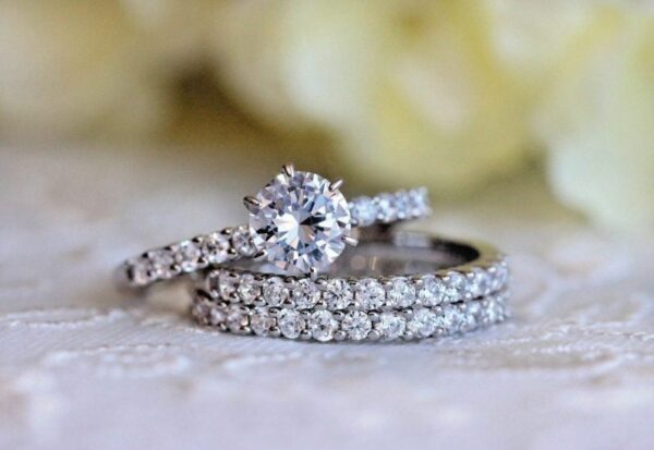 ΣΕΤ 3 δαχτυλιδιών Silver 925 plated που αποτελείται από δύο βέρες (δαχτυλίδια σείρε), με λευκά ζαφείρια (lab-created) σε κοπή round. Μονόπετρο δαχτυλίδι διακοσμημένο με λευκό ζαφείρι (lab-created) σε κοπή roundκαι μικρότερα λευκά ζαφείρια σε κοπή round. Βάρος Πετρών :0.59ct .Βάρος 4.4grams