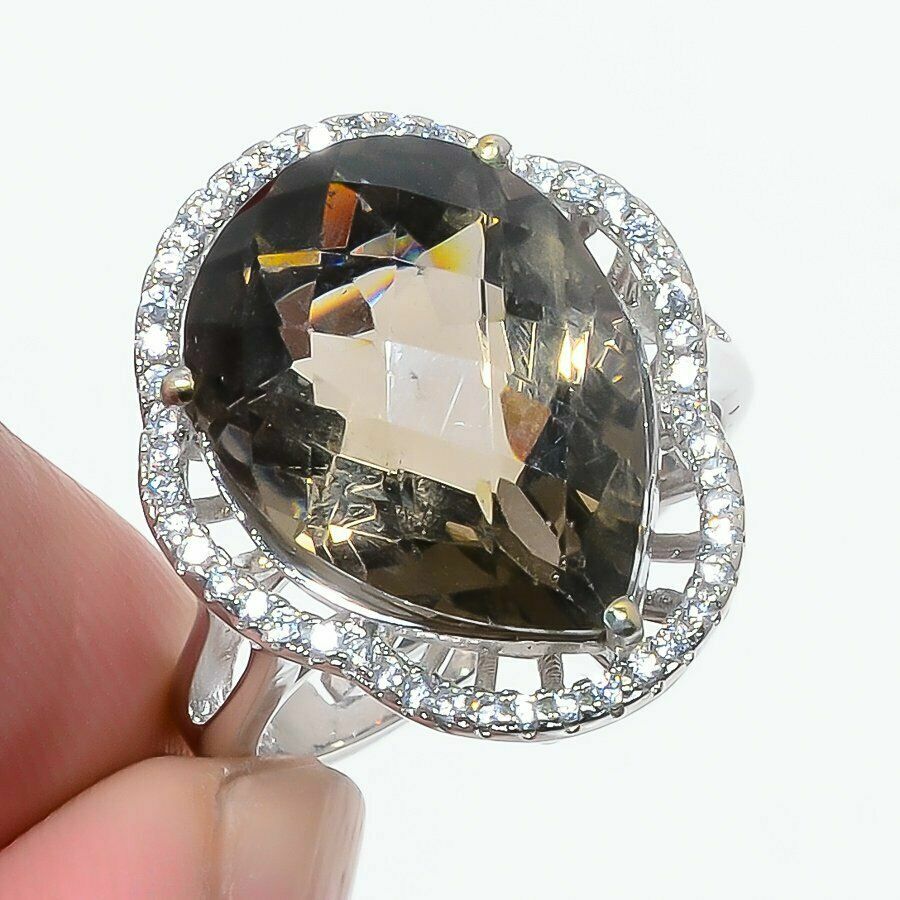 Δαχτυλίδι χειροποίητο κατασκευασμένο από ασήμι 925 διακοσμημένο με έναν ακαταμάχητης ομορφιάς χαλαζία καπνιά ΑΑ ( Smokey Quartz) σε κοπή Pear 18x13mm, και λευκά ζιργκόν περιμετρικά από το στεφάνι σε κοπή round!