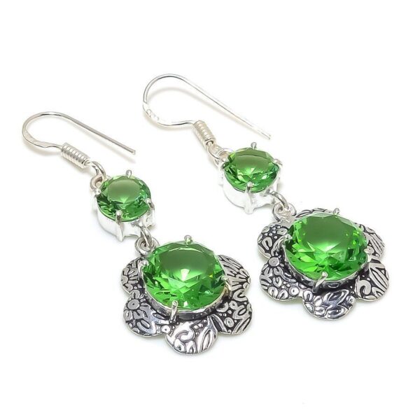 Χειροποίητα, σκουλαρίκια κατασκευασμένα από ασήμι 925 και φορούν ημιπολύτιμους λίθους. Διακοσμημένα με ορυκτόυς λίθους Tsavorite (τσαβοριτης) εξαιρετικής καθαρότητας και λάμψης, σε κοπή round. O Φυσικός Τσαβορίτης γρανάτης σε round κοπή από την Τανζανία με εξαιρετικό χρώμα και καθαρότητα! Tα σκουλαρίκια έχουν μήκος 5 εκατοστά.