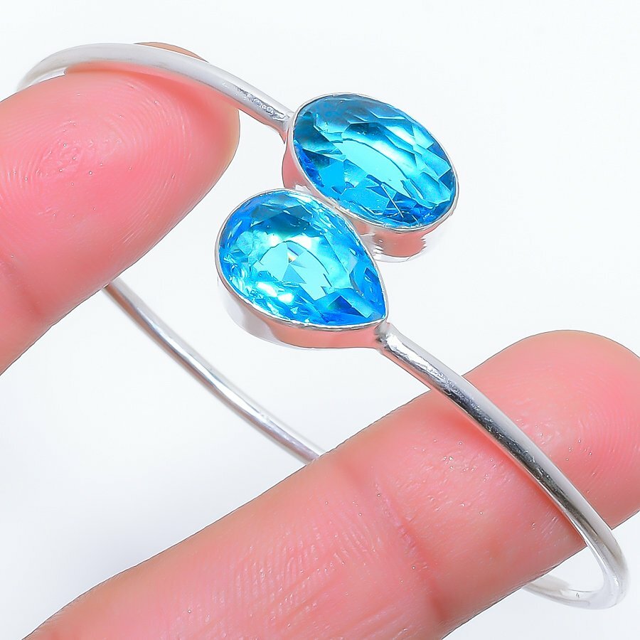 Χειροποίητο βραχιόλι κατασκευασμένο από ασήμι 925, διακοσμημένο με 2 μπλε τοπάζ (Lab Created) σε κοπή oval & Pear