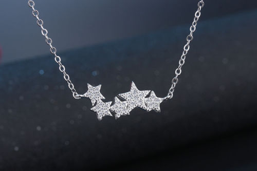 Για ρομαντικές νύχτες, ένα όμορφο κολιέ κοντό ως τη βάση του λαιμού, διακοσμημένο με λευκά ζιργκόν και μοτίφ αστέρια! Κατασκευασμένο από ασήμι 925