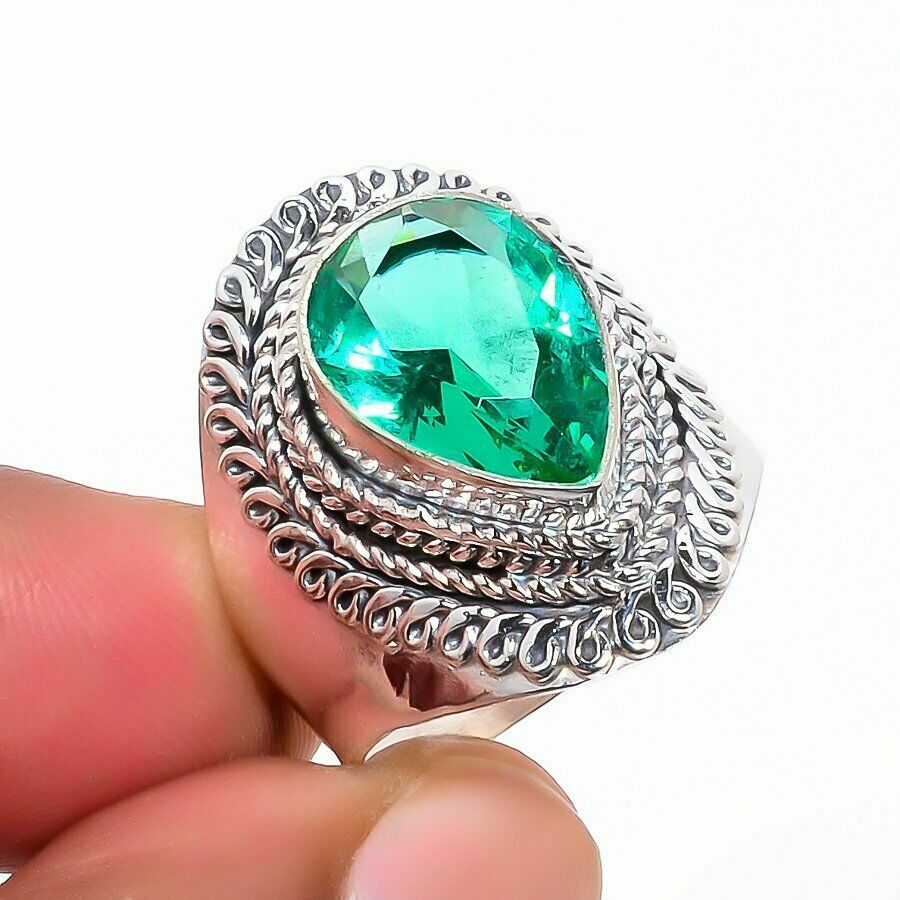 Ένα μεγάλο γυναικείο δαχτυλίδι κατασκευασμένο από ασήμι 925, διακοσμημένο με πανέμορφo λαμπερo σμαράγδι (Lab-Created) σε κοπή pearl.