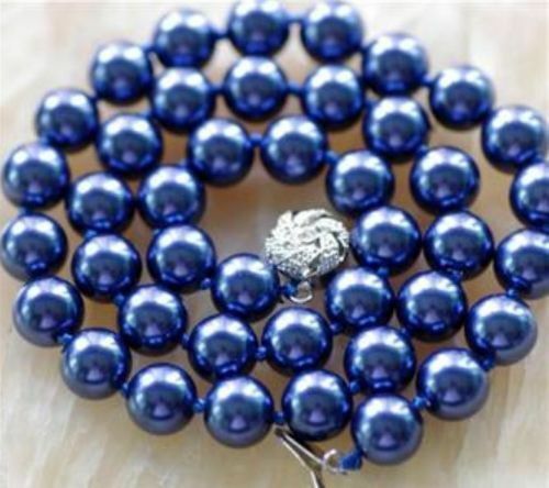 Στο σωστό χρώμα οι πέρλες μπορούν να φορεθούν ακόμα και με το τζιν σας! Πέρλες 10mm AAA, South Sea Shell σε απόχρωση μπλε, δεμένες με διπλό μεταξωτό νήμα. Το κολιέ έχει μήκος 45cm, με υπέροχο κούμπωμα, διακοσμημένο με λευκά ζαφείρια! Ένα πραγματικό κόσμημα!