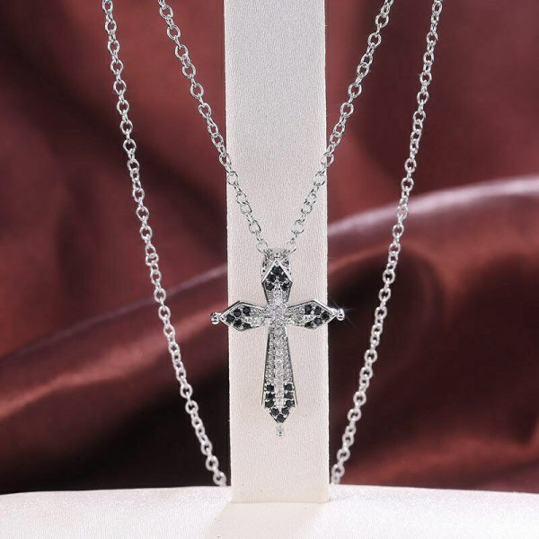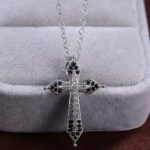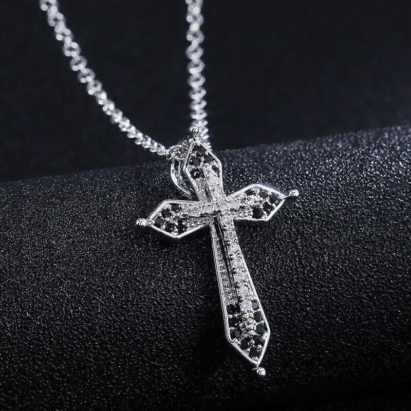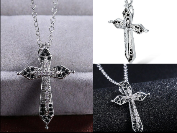 Ένα μικρό κομψοτέχνημα ο γυναικείος σταυρός που σας προτείνουμε. Επάργυρος 925 γυναικείος σταυρός, διακοσμημένος με λευκά και μαύρα ζαφείρια (Lab creation) σε κοπή round. Συνοδεύεται από ασημένια αλυσίδα 45 εκατοστών. Ο σταυρός έχει διαστάσεις 2,7 χ 2 εκατοστά. Βάρος 3,6 γραμμάρια.