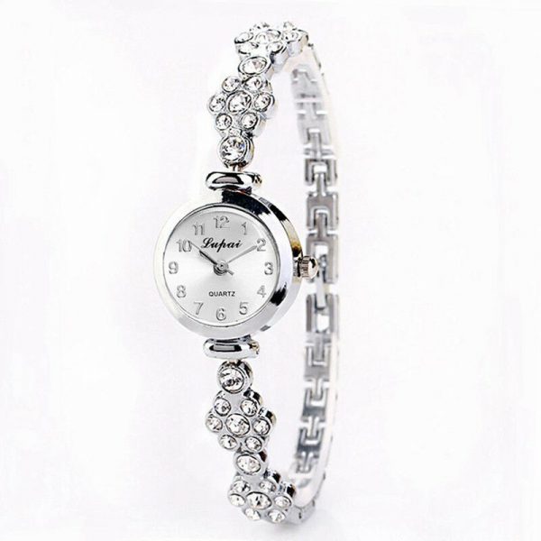 Γυναικείο αναλογικό ρολόι πολυτελείας, κατασκευασμένο από ατσάλι και διακοσμημένο με λευκά αυστραλιανά κρύσταλλα σε σχήμα μαργαρίτας σε κοπή round!