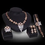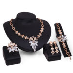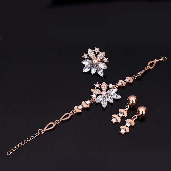 Καταπληκτικό γυναικείο ολοκληρωμένο σετ ΓΑΜΟΥ! Αποτελείται από κολιέ(44cm + 7cm το αλυσιδάκι προέκτασης), βραχιόλι (20,5cm), δαχτυλίδι (3,6χ3,5 open size) και σκουλαρίκια(4,6cm).Κατασκευασμένο από ατσάλι με διπλή επιμετάλλωση κίτρινου χρυσού 14k. Διακοσμημένο με λευκά αυστραλιανά κρύσταλλα σε κοπή oval & round. Eνα κόσμημα πολυτελείας.