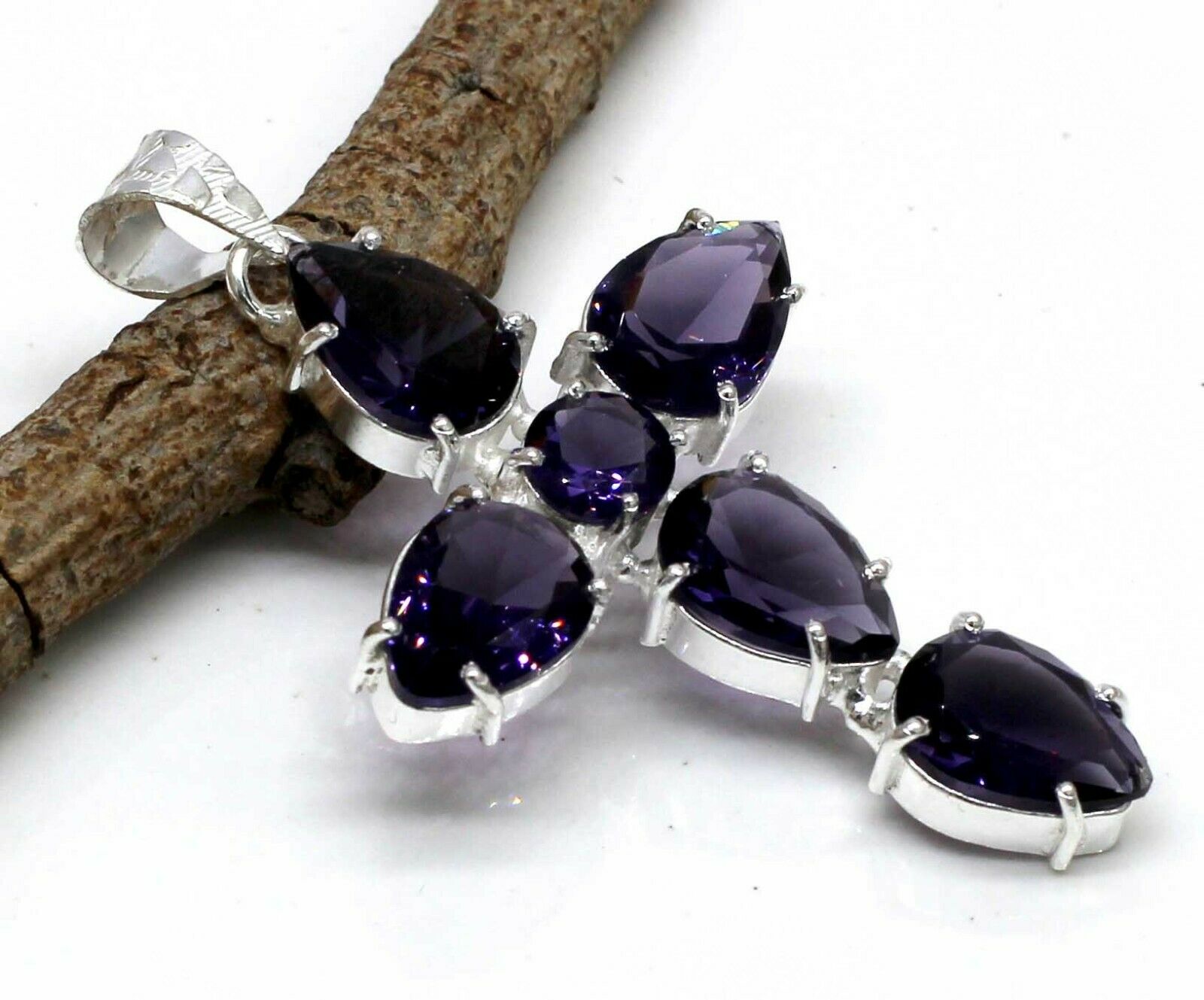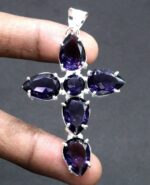 Iνδικός, χειροποίητος γυναικείος σταυρός, κατασκευασμένος από μασίφ ασήμι 925. Διακοσμημένος με υπέροχες, λαμπερές πέτρες Αμέθυστου ( Purple Amethyst) (Lab creation) διαστάσεων 5,5 χ 3,5 εκατοστά. Τιμή 55 ευρώ