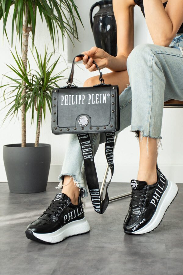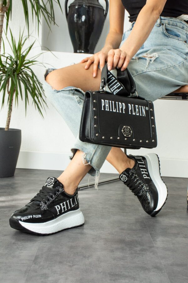 Υπέροχα γυναικεία αθλητικά παπούτσια Philipp Plein σε μαύρο χρώμα με ασημί λεπτομέρειες και λευκή σόλα, ελαφριά και εξαιρετικά αναπαυτικά. Υπόσχονται άνετο περπάτημα και είναι για όλες τις ώρες της ημέρας.