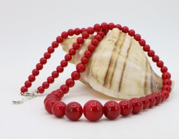 Πανέμορφο σετ που αποτελείται από κολιέ, και ασημένια 925 σκουλαρίκια, με κατακόκκινα 100% φυσικά round κοράλλια 10mm δεμένα σε διπλό μεταξωτό νήμα. Το κολιέ έχει μήκος 45 cm.