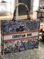 Η Dior Book Tote έχει γίνει βασικό στοιχείο της αισθητικής. Σχεδιασμένο για να διατηρεί όλα τα καθημερινά είδη πρώτης ανάγκης, με κεντημένο μαύρο μοτίβο με την υπογραφή «Christian Dior» στο μπροστινό μέρος. Η τσάντα αποτελεί παράδειγμα της καθημερινότητας και μπορεί να μεταφερθεί στο χέρι ή να φορεθεί στον ώμο.  Είναι κατασκευασμένη από υψηλής ποιότητας καμβά ζωγραφικής.Μία υπέροχη τσάντα που μπορεί να συνδυαστεί με όλα σας τα ρούχα και παπούτσια.