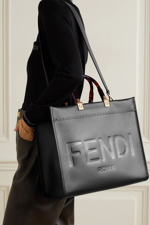 Η tote «Sunshine» είναι αρκετά ευρύχωρη για όλα τα καθημερινά απαραίτητα, από το φορητό υπολογιστή σας μέχρι ένα εφεδρικό ζευγάρι γοβάκια. Αυτή η μαύρη έκδοση είναι χαραγμένη με το όνομα της μάρκας στο μπροστινό μέρος και ολοκληρώνεται με λαβές σε εφέ χελώνας με χαραγμένο χρυσό λογότυπο και στα δύο άκρα. Συνδέστε τον ιμάντα ώμου για hands-free.