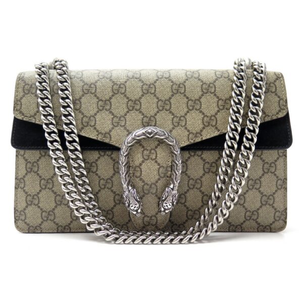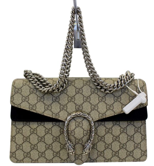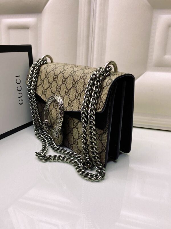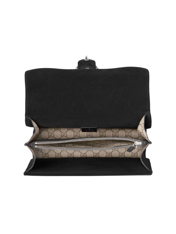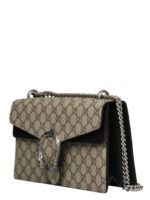 Supreme τσάντα με καμβά με υπέροχες λεπτομέρειες από μαύρο σουέτ δέρμα. Mε το ανάγλυφο κλείσιμο του κεφαλιού τίγρης – μια μοναδική λεπτομέρεια που αναφέρεται στον Έλληνα θεό Διόνυσο, ο οποίος σύμφωνα με τον μύθο λέγεται ότι διέσχισε τον ποταμό Τίγρη πάνω σε μια τίγρη που του έστειλε ο Δίας..