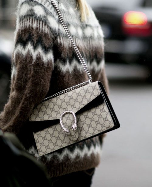 Η τσάντα είναι εφοδιασμένη με αλυσίδα. Ο συρόμενος ιμάντας αλυσίδας μπορεί να φορεθεί με πολλούς τρόπους, αλλάζοντας ανάμεσα σε μια τσάντα ώμου ή σαν τσάντα χειρός. Μήκος πτώσης 38 εκατοστά.