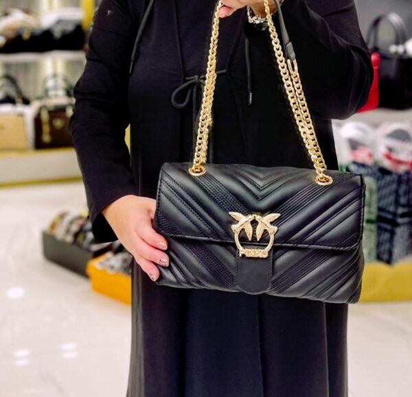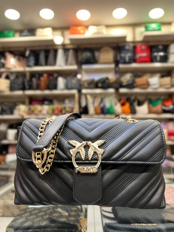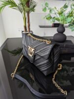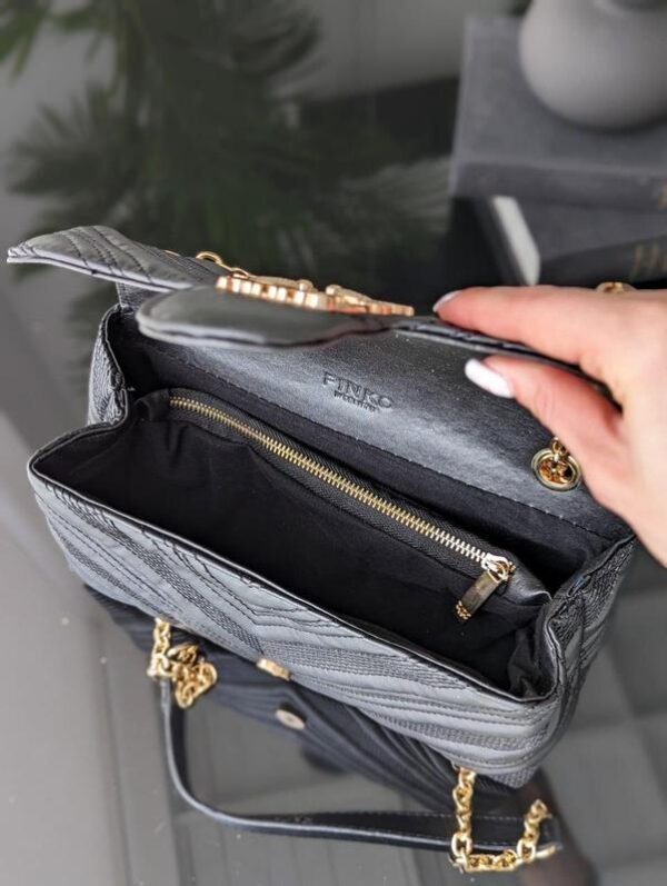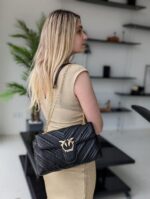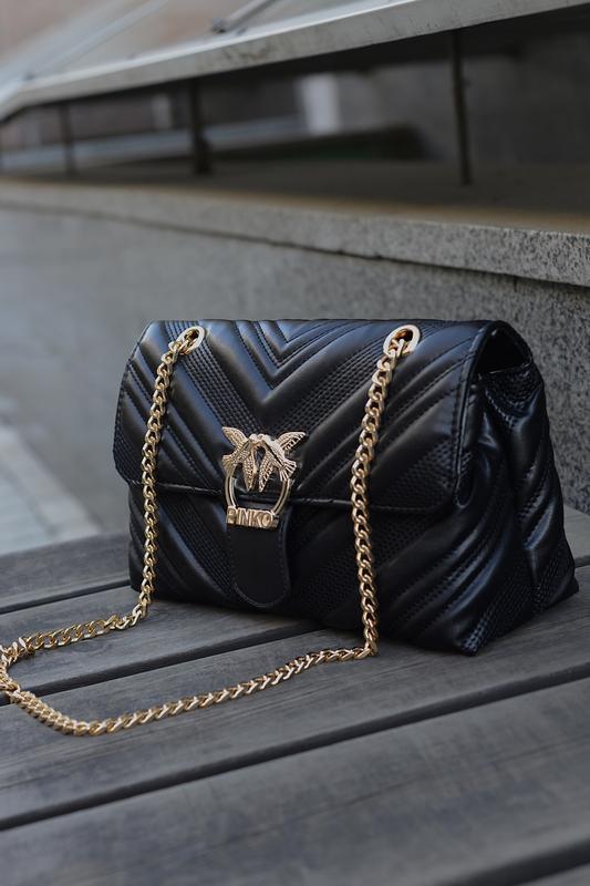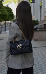 Κλασική μαύρη τσάντα PINKO από 100% eco μαλακό δέρμα.