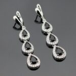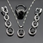 Κλασικό και διαχρονικό σετ, επάργυρο 925. Αποτελείται από μενταγιόν, σκουλαρίκια και δαχτυλίδι, διακοσμημένα με μαύρα συνθετικά ζαφείρια. Συνοδεύεται από αλυσίδα 55cm.