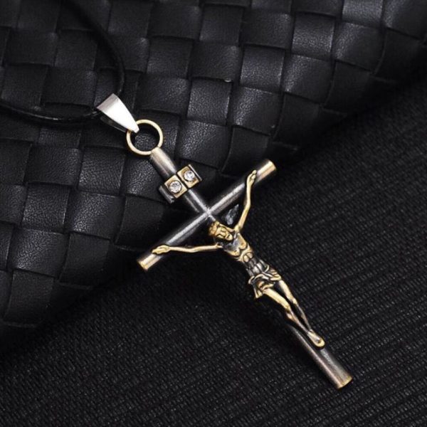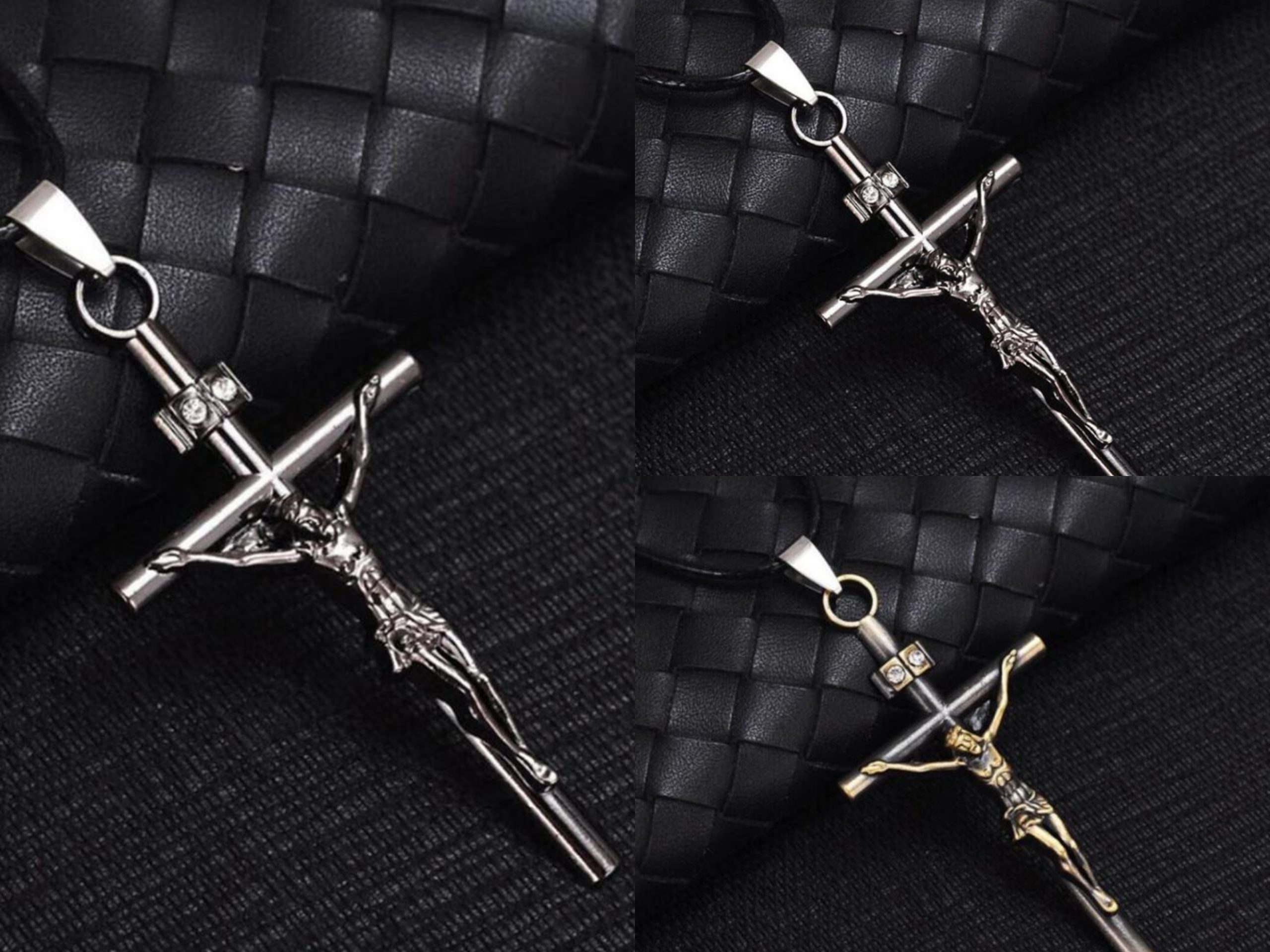 Σταυρός το αιώνιο σύμβολο! Κατασκευασμένος από μαύρο ανοξείδωτο ατσάλι, συνοδεύεται από αλυσίδα και κορδόνι μήκους 60 εκατοστών. Διακοσμημένος με λευκά ζιργκόν σε κοπή round. Ο σταυρός έχει διαστάσεις 6,4 cm X 3,3 cm. Σε τρείς (3) αποχρώσεις, SILVER – ΑΝΘΡΑΚΙ ή με τον Εσταυρωμένο σε χρώμα BRONZE για να διαλέξετε αυτό που σας αρέσει καλύτερα.