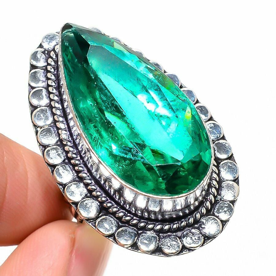 Δαχτυλίδι χειροποίητο, ινδικό.Kατασκευασμένο από μασίφ ασήμι 925 και διακοσμημένο με Περίδοτο (Peridot) (Lab creation) σε κοπή pear.Total Carat Weight: 50Ct