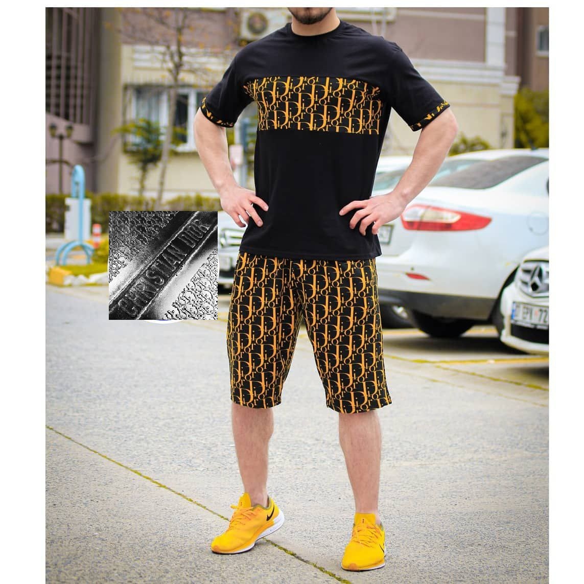 Μαύρο μπλουζάκι σε συνδυασμό με yellow-black αθλητική βερμούδα με λογότυπο Dior. Σύνθεση από 100% βαμβάκι. Διαθέσιμο και ετοιμοπαράδοτο σε όλα τα νούμερα.