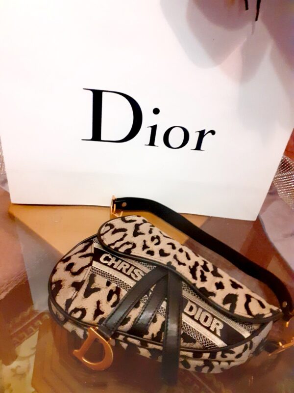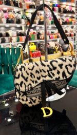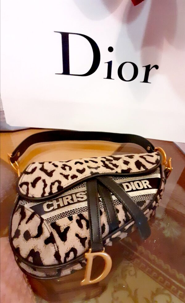 Saddle bag (το μεγαλύτερο μέγεθος). Διαθέτει πτερύγιο σέλας με μαγνητικό κούμπωμα, διαθέτει υπογραφή σε κάθε πλευρά της λαβής και στον ιμάντα. Η τσάντα Saddle μπορεί να μεταφέρεται με το χέρι ή να φοριέται πάνω από τον ώμο και μπορεί να προσαρμοστεί με διαφορετικούς ιμάντες ώμου. Μεταλλικά με χρυσό φινίρισμα. Διαστάσεις τσάντας: 24×20.Η τσάντα θα συνοδεύεται από τον ιμάντα της φωτογραφίας για να μπορείτε να την φοράτε και στο ώμο σας.