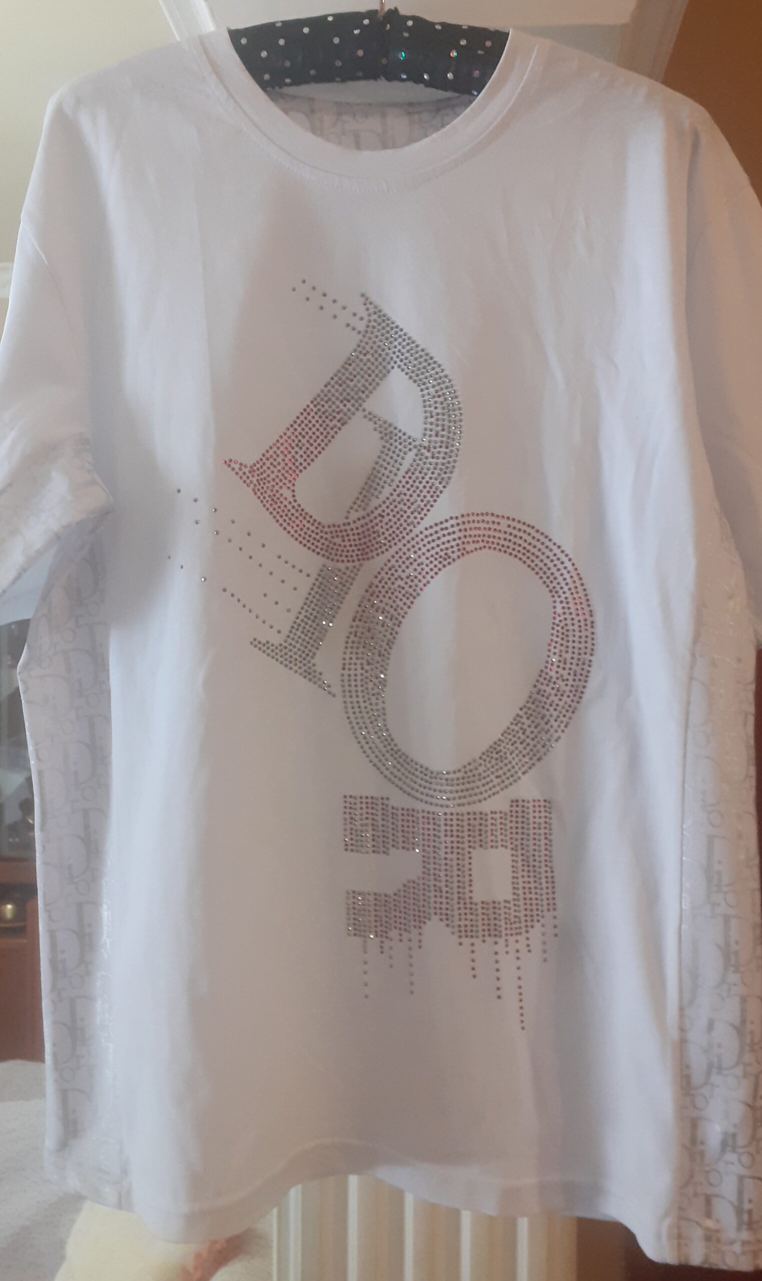 DIOR T-Shirt Λευκό, με στρας το λογότυπο έτσι ώστε να μπορείτε να το σιδερώνετε.