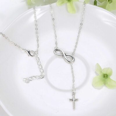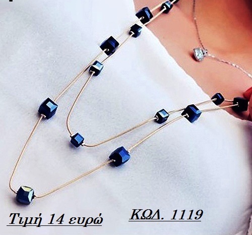 Διπλό γυναικείο κολιέ με τετράγωνες χάντρες, σε σκούρο μπλε χρώμα και αλυσίδα στο χρώμα του χρυσού με μήκος 72 εκατοστά.